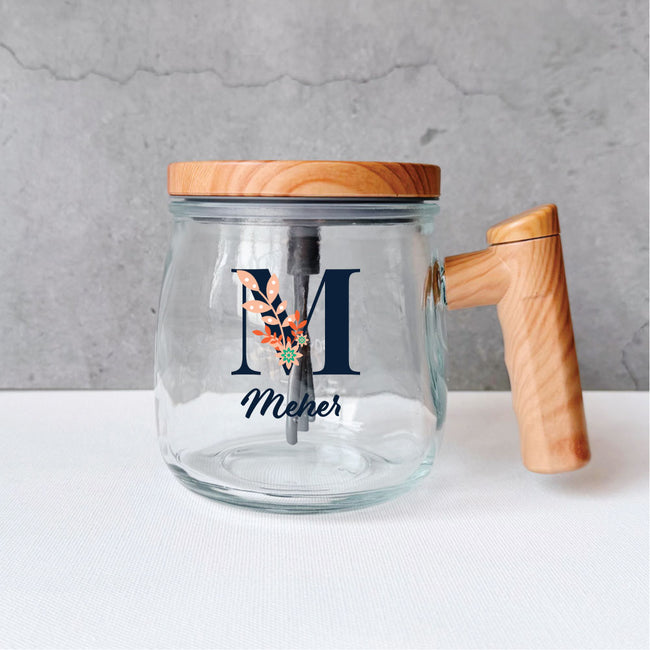 Elevate your daily beverage ritual with this ingeniously designed self-stirring glass coffee mug, seamlessly blending functionality with refined aesthetics. Featuring a rechargeable mixing mechanism and integrated frothing capability, it effortlessly transforms your morning coffee, hot chocolate, protein shakes, and countless other beverages into perfectly blended creations. The elegant wooden texture detailing adds a touch of sophistication to your kitchen counter or workspace.
